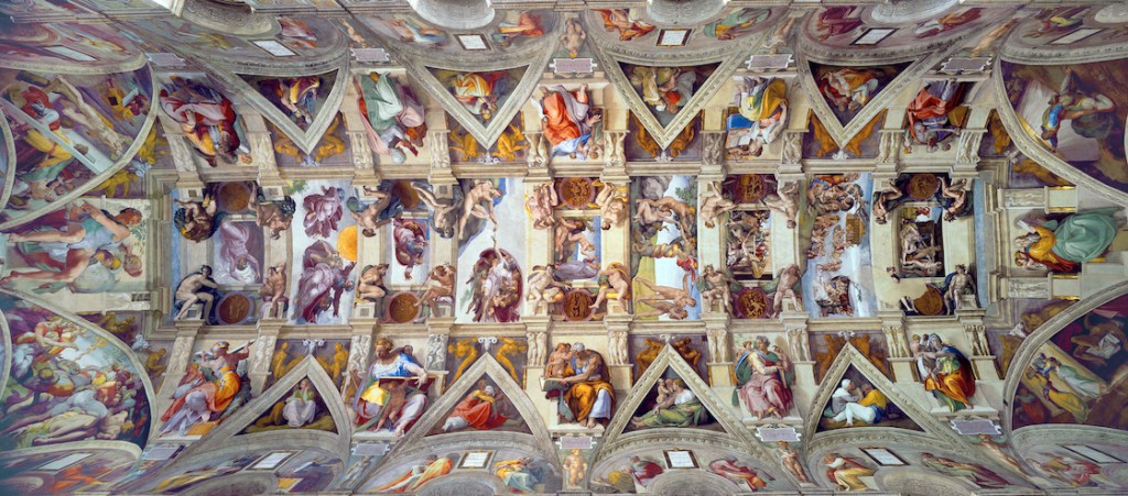 Above this earthly layer are the clouds, parting to reveal a heavenly assembly of intercessors: twenty deities drawn from across human cultures, and all nude, representing humanity’s innocence and connection with divinity before our perceived separation from Ji. Maitreya embodies hope for the future; Ma’at (in the center) weighs the world upon her scale. Shiva flows in the dance of yoga and the arts, his multiple blue arms outstretched. Amaterasu radiates the sun’s beams towards the earth below. Pachamama nourishes the earth. Apollo strums a lyre while Minerva writes strategy. Guanyin sits upon the clouds with serene warmth. Inanna embodies sexuality and procreation, while Freyr complements her with fertility, agriculture, and peace.
